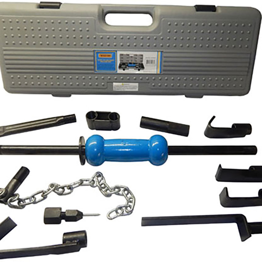 The 10 lb. Professional Dent Puller Set helps in pulling out dents and straightening body panel edges. The 10 lb. dent puller set enables you to pull seals, bearings, bushings, dents and sleeves. The slide hammer and puller feature a heavy-duty construction and make pulling a breeze. The puller set consists of forged and hardened steel hooks, attachments, and pullers. A carrying case helps you stay organized and are easy to transport from job to job.