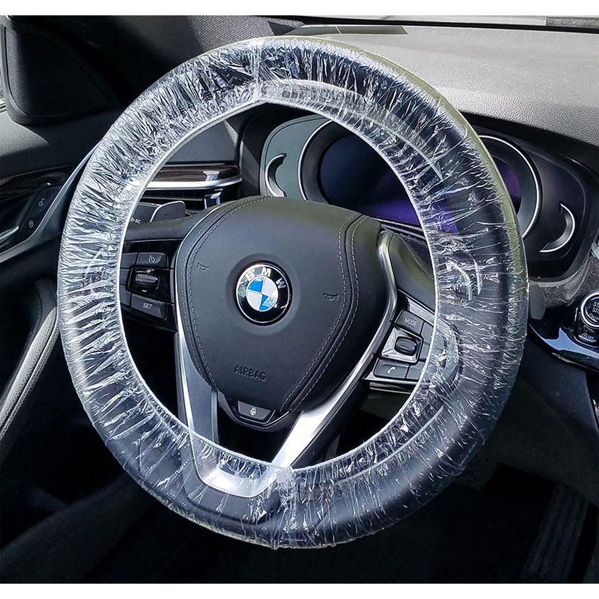 • 24" Disposable Plastic Steering Wheel Covers are constructed from durable polyethylene film with 2 elastic bands around the edge to secure the cover around the steering wheel