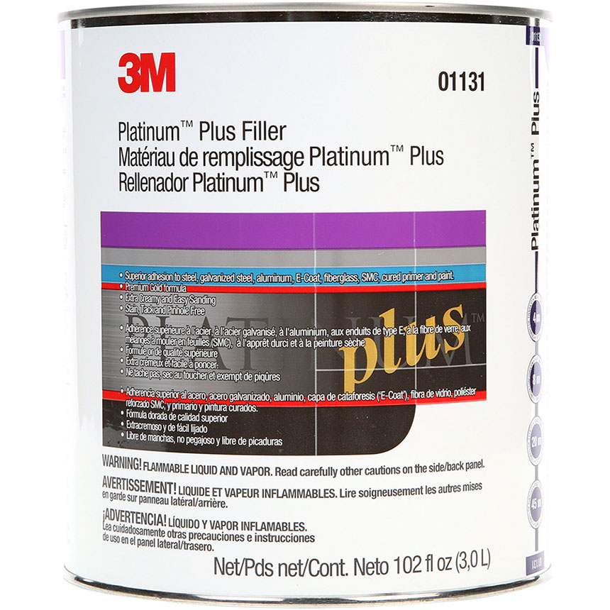 The one gallon can of 3M platinum plus filler includes a crème hardener. You can now repair surface imperfections on your auto body, industrial or architectural surfaces with ease and perfection. It requires only a 20 minute cure time to help you sand sooner. This product is vacuum processed to make it pin hole free. The silky texture makes it easier for you to sand.