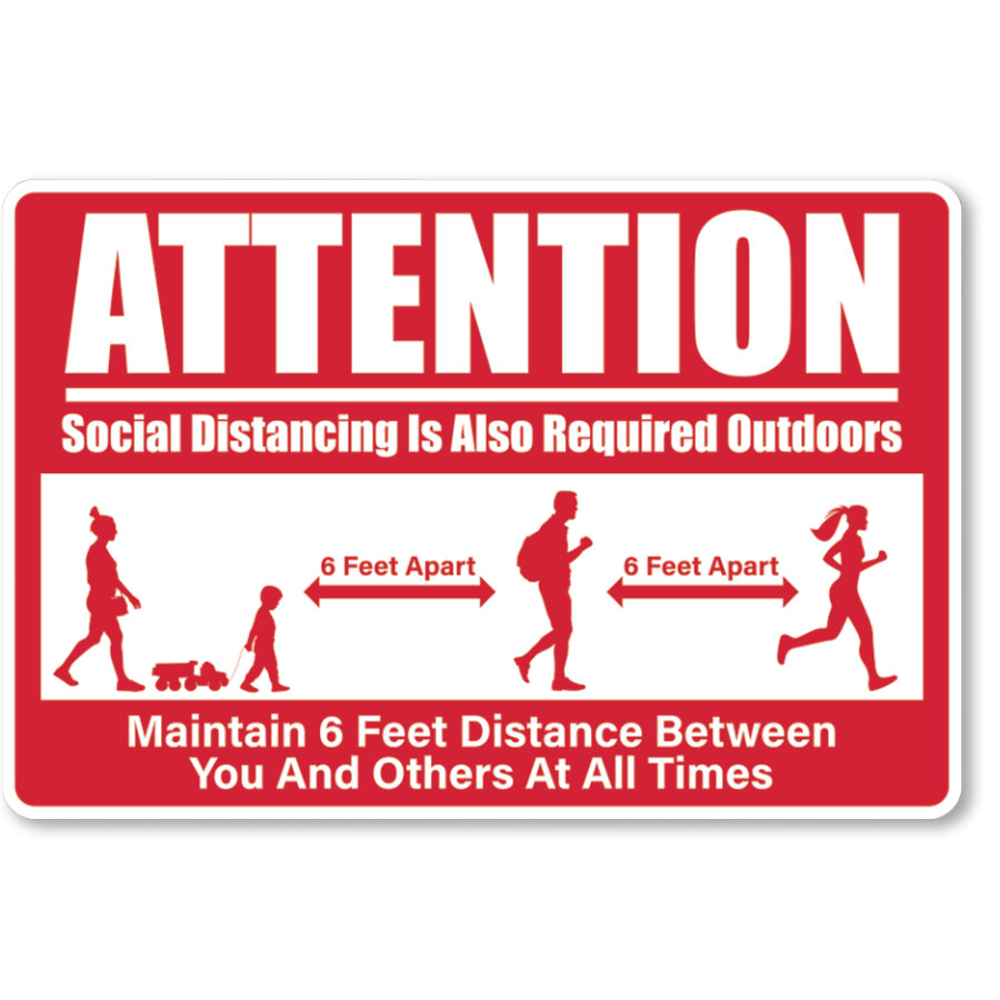 Attention Social Distancing Outdoors - Sign 12x18 in