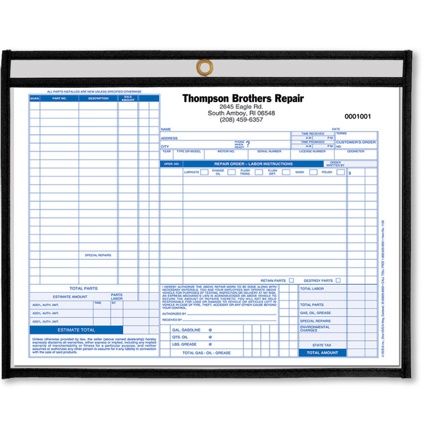 Protect repair order forms from wear and tear. Use different colors to classify jobs or types of repair.