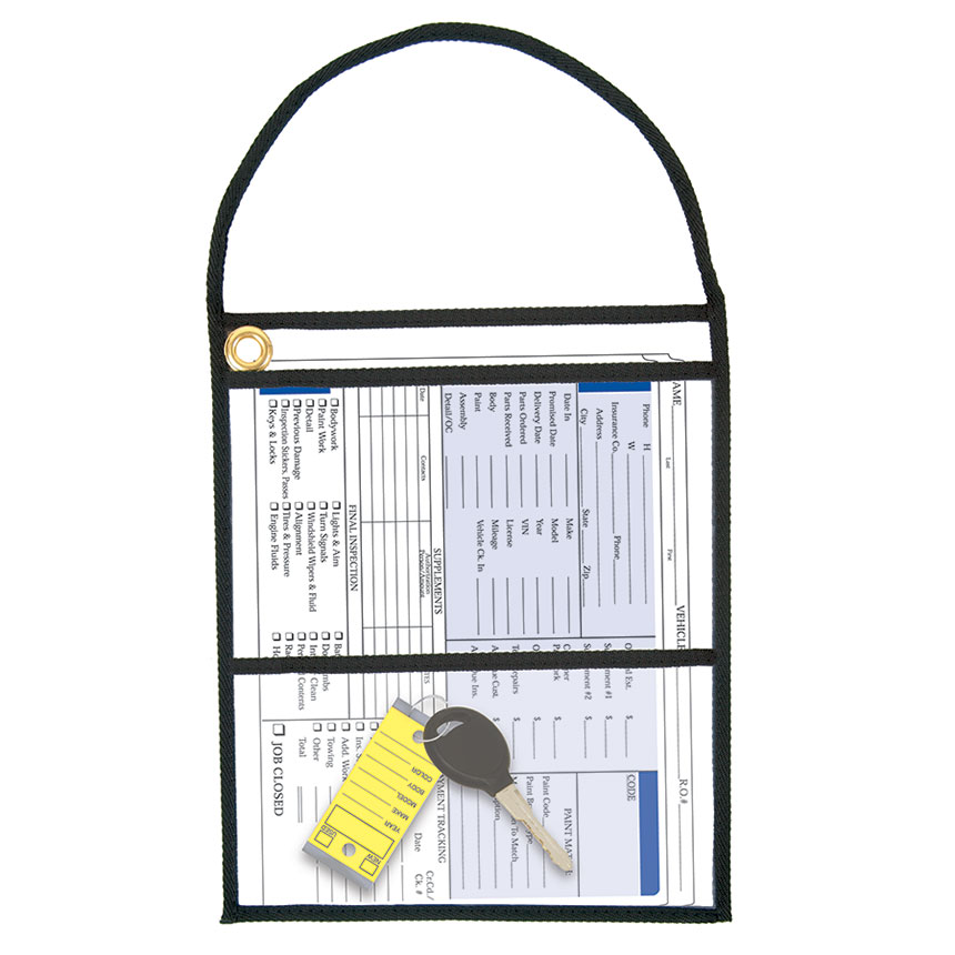 Hanging RO Protector with Pocket The large 9 1⁄2" x 12" pocket is perfect for repair orders, and the smaller 9 1⁄2" x 6" pocket holds keys, disks or any other information that needs to follow a job through the repair process.