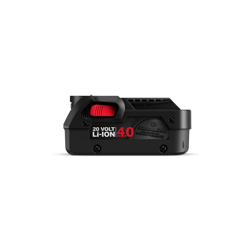 The high-performance Chicago Pneumatic 20-Volt Cordless Tool Battery is built to provide double the runtime of the conventional batteries available on the market. This cordless battery is durable and provides a super performance for enhanced productivity, mobility, and ease of operation. This 4Ah 20-volt Lithium-ion battery is shock-resistant and slides smoothly into the tool's cradle.