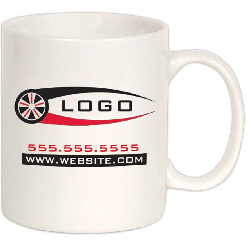 These great looking 11 oz. coffee mugs are always a hit with customers and employees. They make great appreciation gifts and keep your company name "in hand." Choose from any of the stock images in the Gallery to customize your coffee mugs or use your own logo! Imprint on 1 side, 2 sides or wrap-around. Color: White. Minimum Qty: 72. Extra Charges: Set up charge of $50.00 per color; Run Charge $0.35 ea. per additional color. Call for pricing on custom orders 1-800-367-6575.