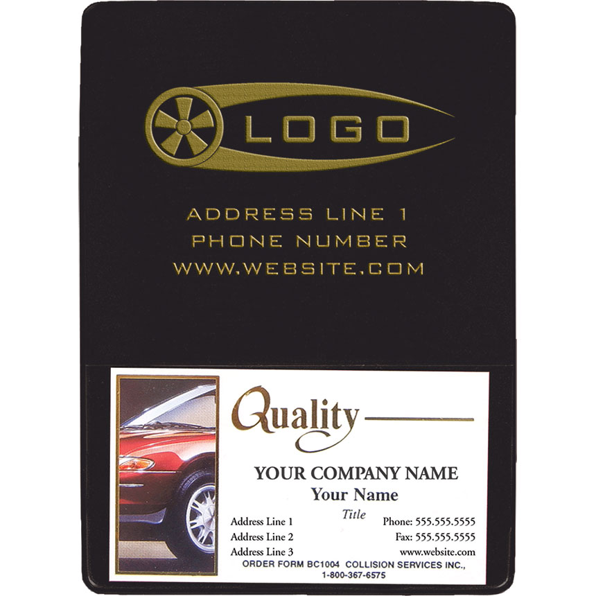 This durable vinyl holder has a large plastic pouch into which your customers can insert all of their insurance information. Slip your business card in the small front pouch and give them to your local insurance agent or hand them out yourself to every customer.