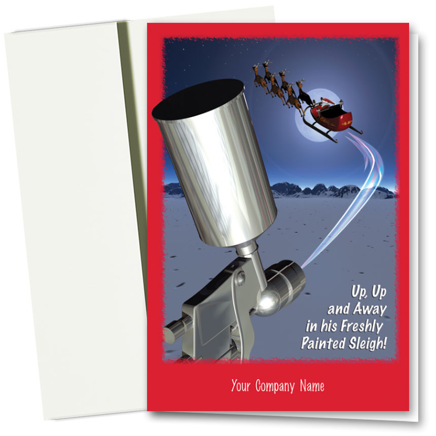 This double personalized card features your company name on the front so that it becomes part of the design! The card inside is printed with the holiday message of your choice and your company name.