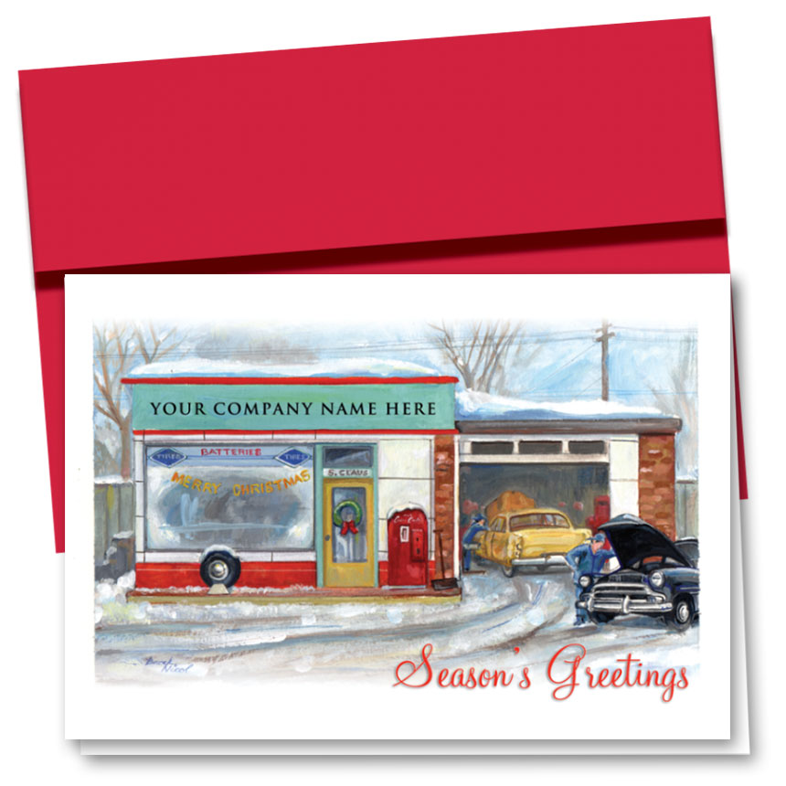 This double personalized card features your company name on the front so that it becomes part of the design! The card inside is printed with the holiday message of your choice and your company name.