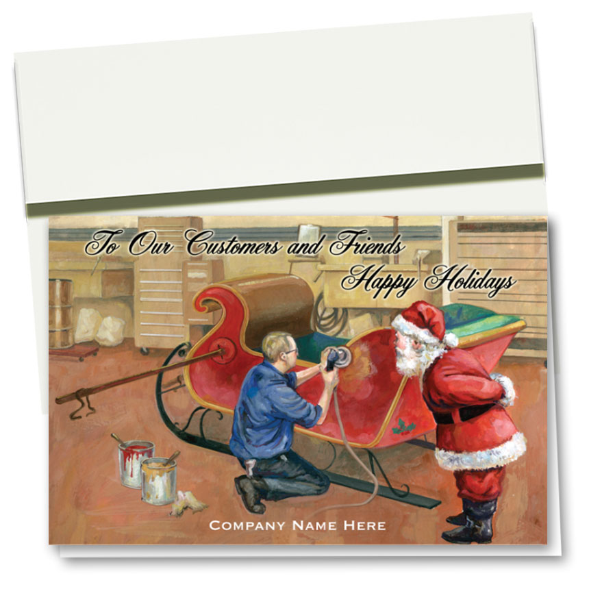 This double personalized card features your company name on the front so that it becomes part of the design! The card inside is printed with the holiday message of your choice and your company name.
