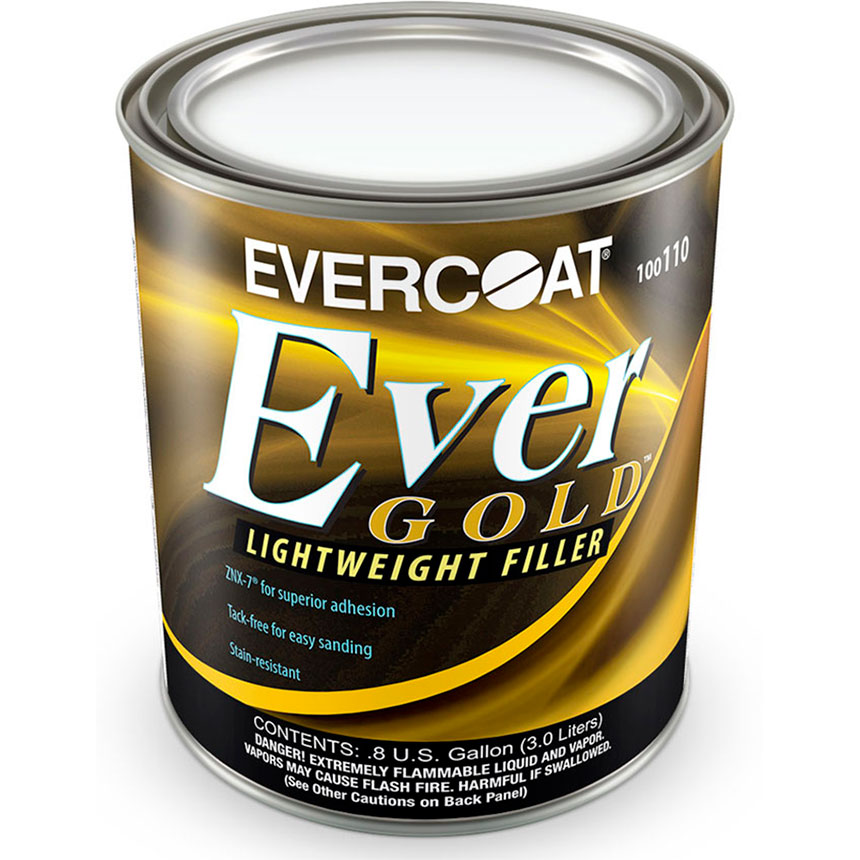 EverGold is a lightweight filler designed for professional use to repair damaged body panels where increased productivity, decreased material costs and premium results are desired. Its unique formula is designed to spread and level to a smooth finish, reducing sanding time to remove heavy texture. It easily sands with 80 grit sandpaper, eliminating the need for coarse grits that can cause sand scratch swelling. EverGold contains ZNX-7 which quickly provides superior adhesion to galvanized steel and aluminum, eliminating the risk of pulling back the featheredge.
