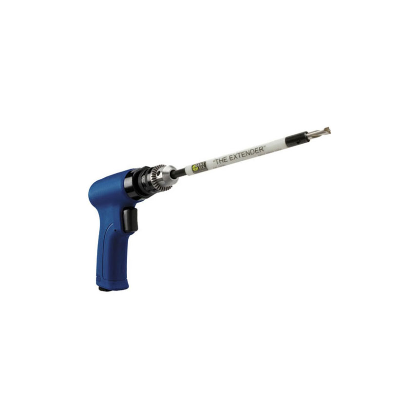 "The Extender" is a spot weld drill bit extension that adds 6-1/2 inches of length and gives you easy access when you want to reach difficult spot welds. The plastic sleeve on the tool protects nearby structures from damage and cables from tangling. You can easily stabilize the drill point by holding this sleeve. This tool works well with any 3/8" drill. We recommend that you do not exceed 1800 rpm.
