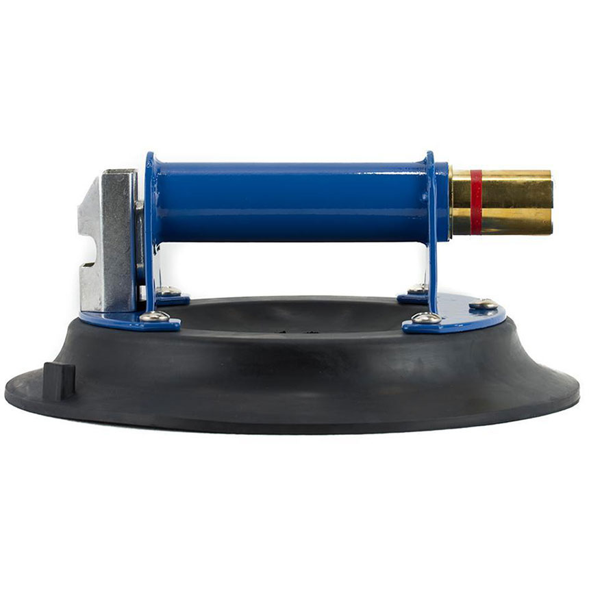 9" diameter vacuum suction cup with metal body gas barrel. Excellent for lifting and carrying stone tiles, slabs, and CURVED or FLAT glass.