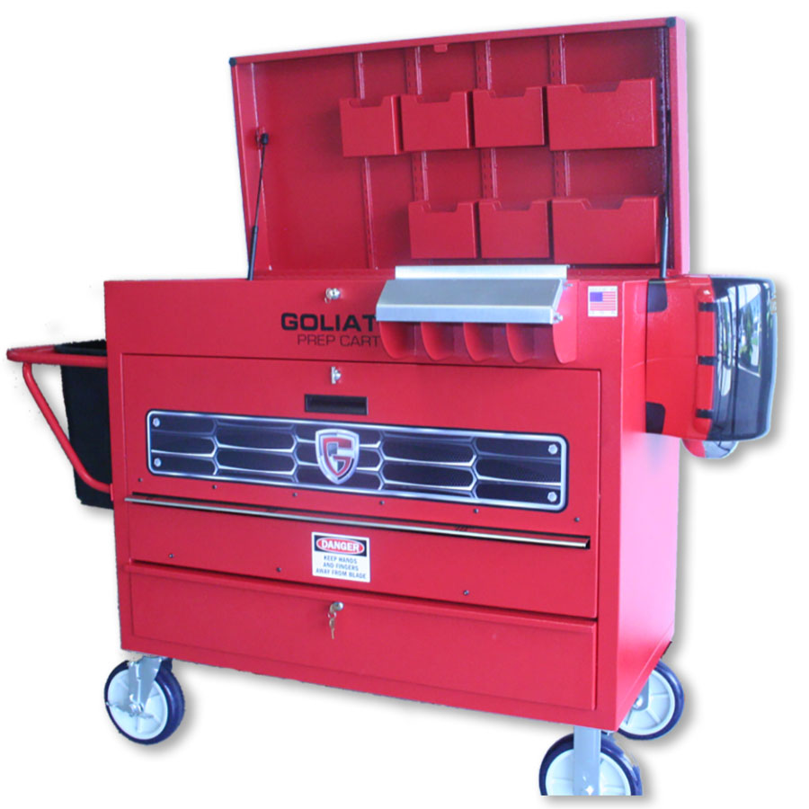 This painter's tool box revolutionizes and streamlines the paint department workflow and it gives shop owners a means to manage and control the inventory being used. The paint cart has all of the auto body painting tools that the technician needs and, more importantly, it provides security for those items.