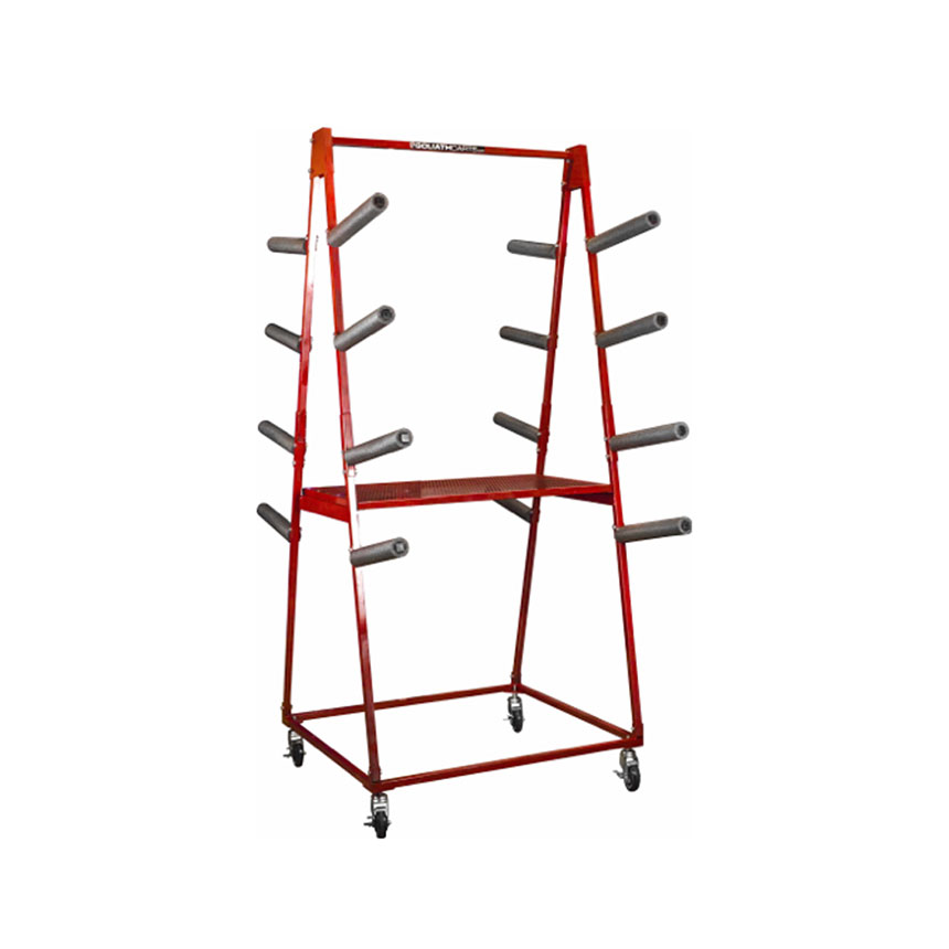 The arms are padded and fold up for easy storage. Adjustable arms in 6" increments to allow you to move the shelves to accommodate different size bumpers. The mesh shelf provides you plenty of storage for miscellaneous bumper parts.