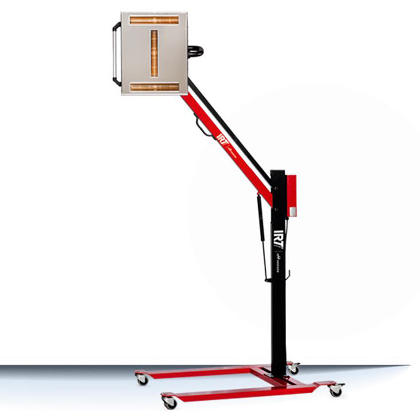 Using short wave infrared, the IRT-4 is ideal for curing small to medium-sized surfaces and has a maximum height of 88" which enables curing roofs on larger vehicles such as SUV's, pickups and minivans. It speeds up drying of putty, filler, base and clear coat. Powerful ventilation with particle filter cools the 3kW cassette and prolongs the life of the bulbs. • Designed for vertical & horizontal applications • Gold-coated FreeForm reflectors for optimal heat distribution • Cure Area of 40" x 43" • Vertical cassette that uniquely repositions allowing for hood repair as well • Two manual timers - for ease of use Flash Off – 50% power Full Bake – 100% output