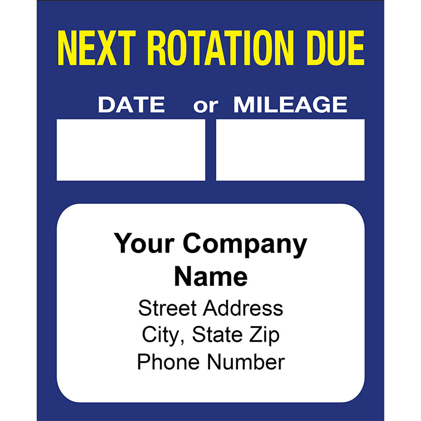 Completely "removable" sticker! Place these colorful service reminders on a vehicle's windshield, dash, doorjamb, or wherever they'll be seen the most! They're printed on a completely removable paper stock that peels away without leaving a sticky residue behind. Durable stickers feature your company imprint and easy-to-write-on boxes for recording the date and mileage.