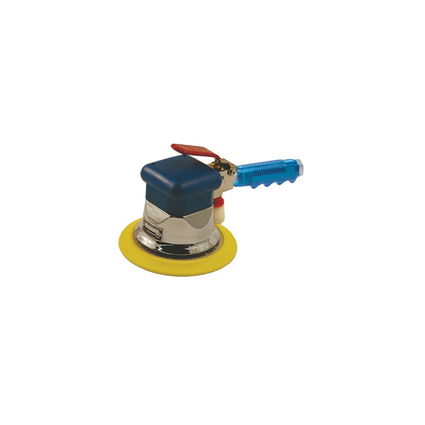 Hutchins Super Sander has a flex-cover for a comfortable grip that can reduce the strain on your fingers and hands. It has a low profile, vibration-free motor for full-contact sanding; this, in turn, ensures a better finish. Another important feature is the special Air Efficiency System. With a Positive-Action Drive that is backed by four specially designed bearings, the tool can generate more power in less air. The special over-sized drive head can reduce the wobbling on the pad for more effective sanding. An optional handle is sold separately.