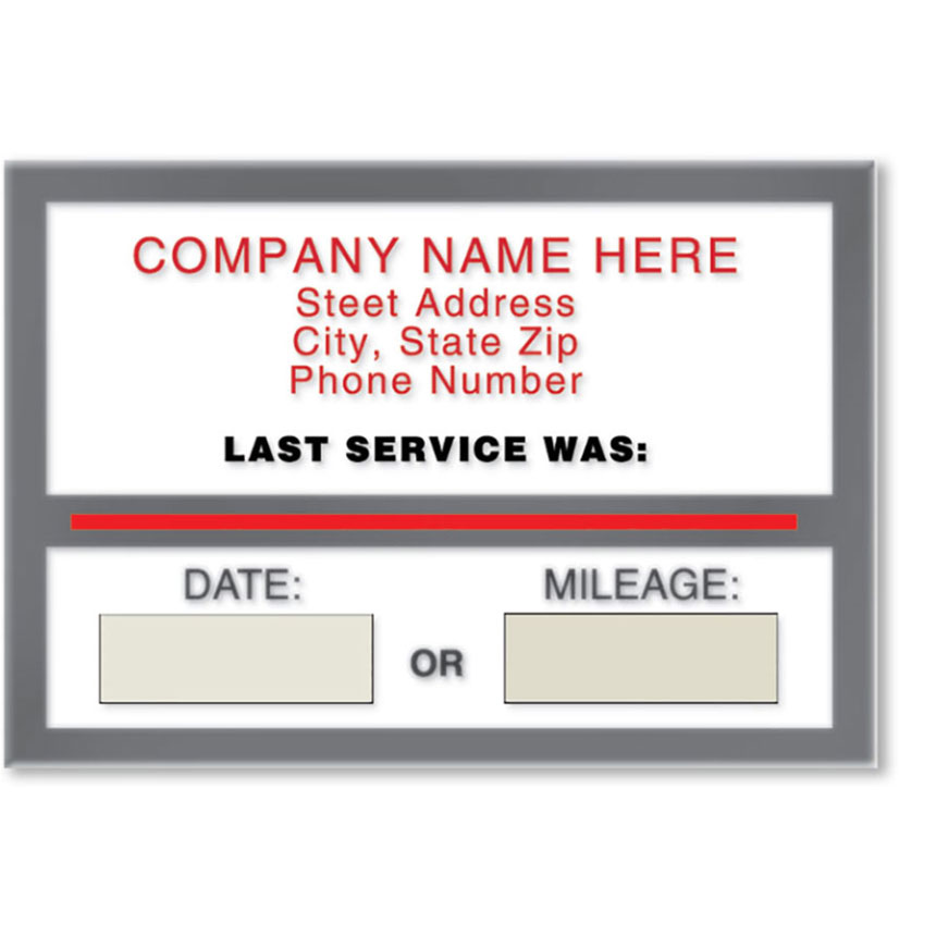 When you use personalized service stickers, your customers are reminded of your company every time they get behind the wheel. Stickers have blocks for writing date and mileage information.