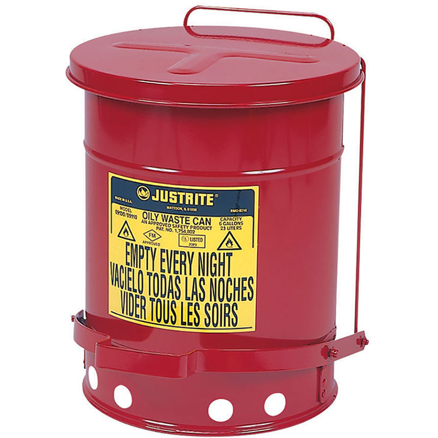 JustRite 6 Gallon Oily Rag Can is an essential in any auto body workshop, lab, factory or warehouse. It is necessary for any environment that deals with equipment or handling of fuels or oils and where drips and spills are inevitable.