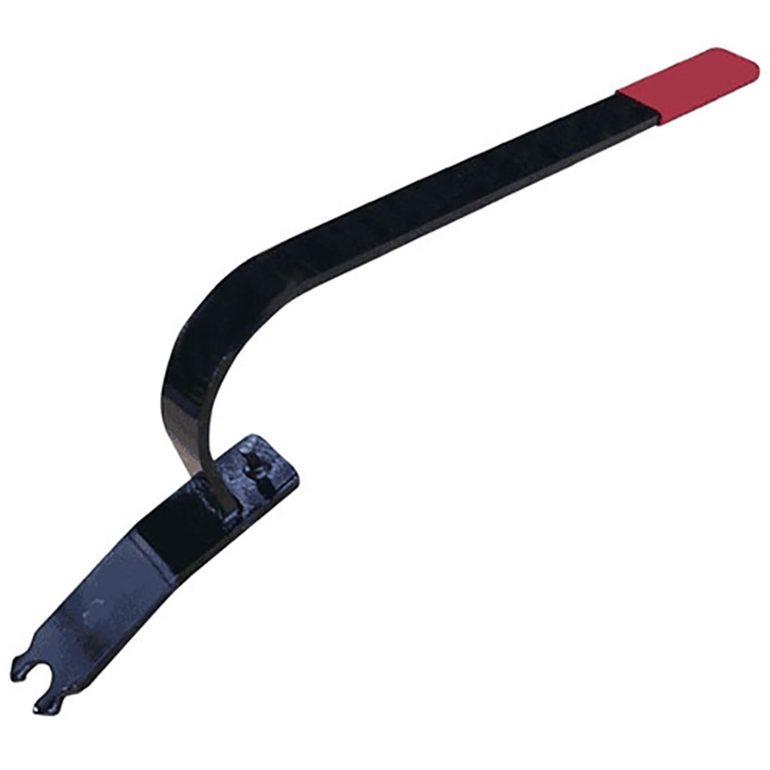 Will adjust doors with either bolted or welded hinges. Simply slide pin end of tool into door latch and close door until tool engages door striker. Now raise or lower tool handle to align door. Comes with two-headed pin adapter for both large and small latches. Specially designed handle, for optimum leverage, makes adjustment fast and easy.