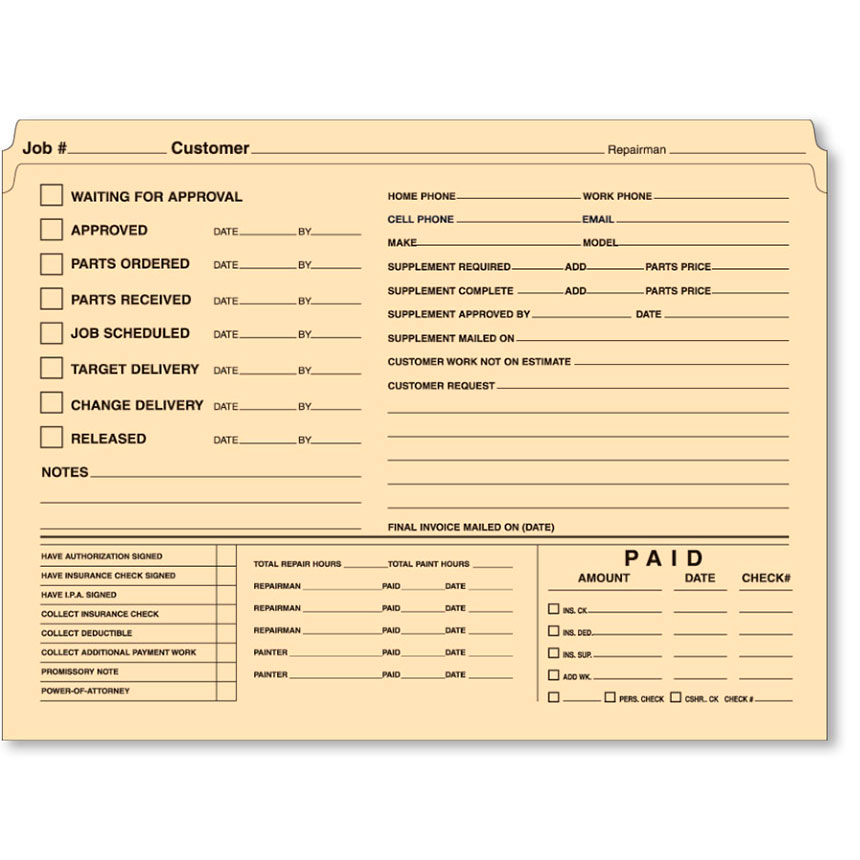Organize your files with this easy-to-use manila folder! Store loose papers inside and keep jobs on schedule with the handy checklists on the outside of the folder. Folders feature open ends for easy access.
