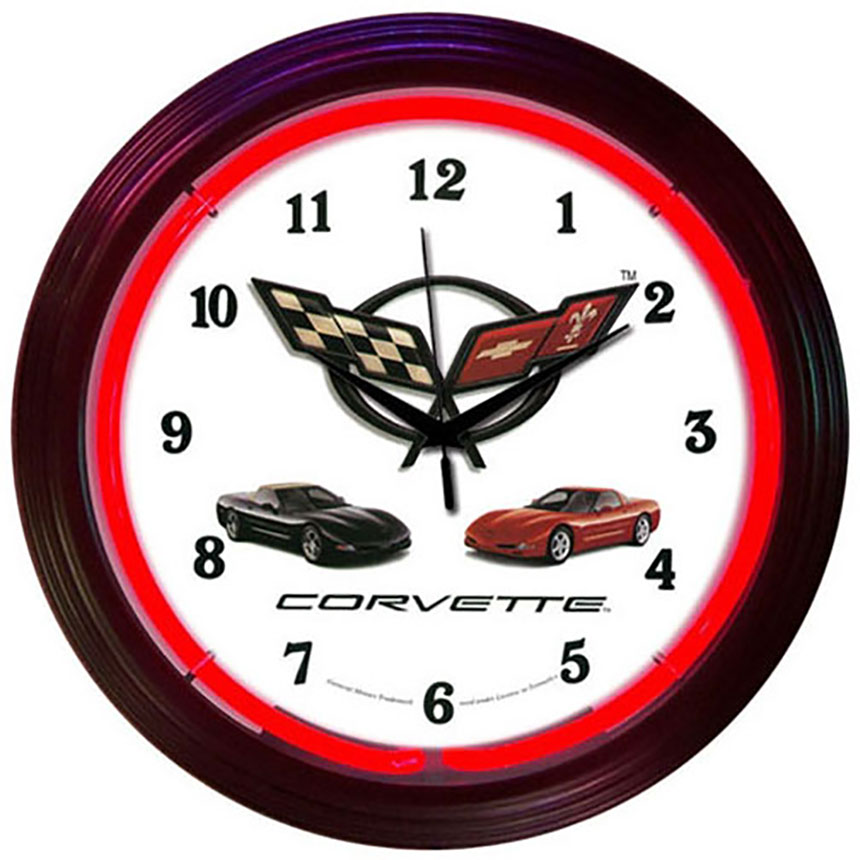 Clock ring is the only neon lit part. Face of clock is not backlit.