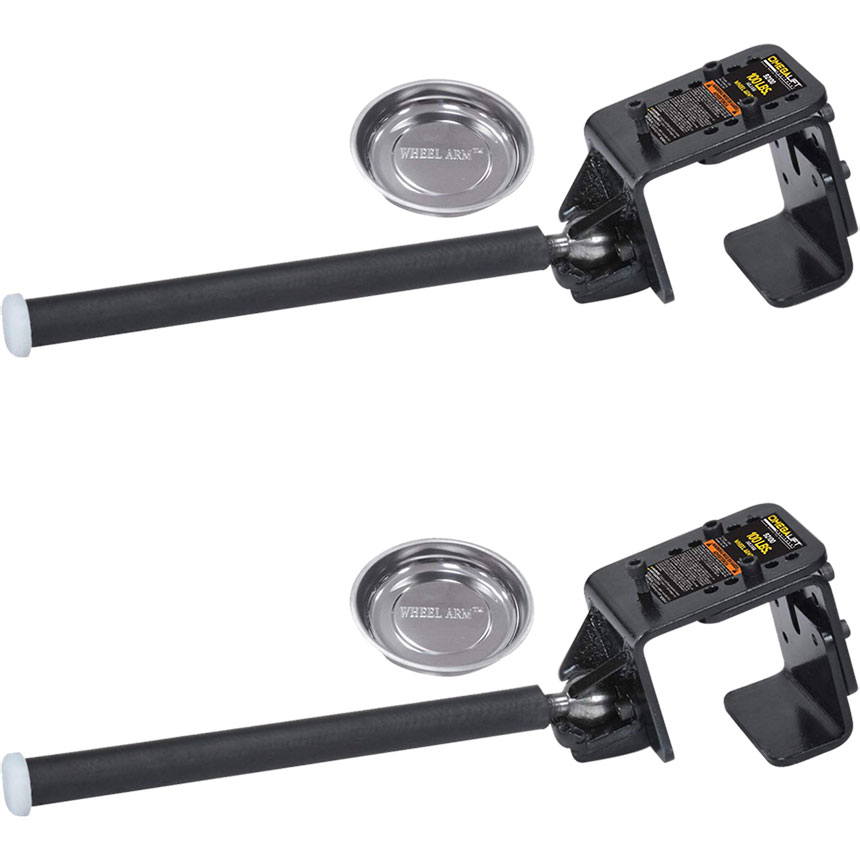 Also included with this set of arms are two magnetic tool trays. These trays automatically affix themselves to any metal surfaceâ€"including brace of the wheel armâ€"to keep track of essential equipment during tire change-outs (such as lug nuts) while the tire is off of the vehicle.