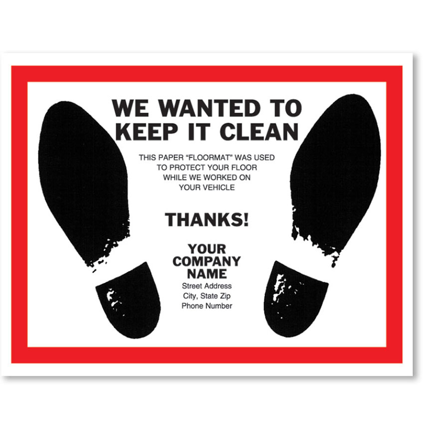 Make your last impression a strong impression! When your customers step into a nice, clean vehicle, carefully protected by an eye-catching floormat, they will remember your quality service and courteous care of their vehicle. To order, simply select a design, and ink color for your personalized imprint.
