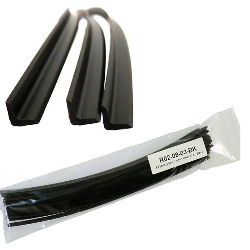 We found the stickiest PP resin on the market and extrude it into a 90 degree, V-shaped profile that's 1/4" (6.4mm) on each of the sides. Convenient when welding flanges on bumper covers or any other time that you need to weld 2 pieces of at a 90 degree angle. Use this rod with a hot air welder for welding up bumper covers made from PP blends (TPO, TEO, PP/EPMD, etc.) This rod is the BLACK color and makes a more invisible repair when welding black parts.