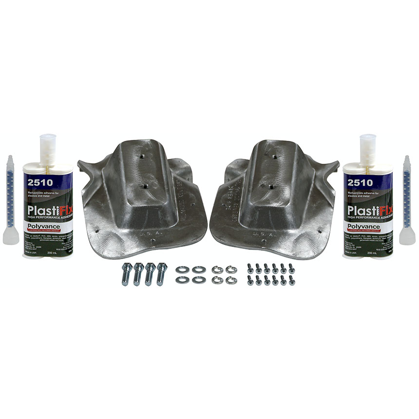 Polyvance's Kenworth T880 LONG hood repair kit allows the user to repair the broken, strut-bracket mounts on Kenworth T880 LONG Hoods. These strut-bracket mounts seem to break easily. Rather than spending thousands on a new hood, Polyvance created the Kenworth T880 Long Hood Repair Kit which repairs and reinforces the broken strut-bracket mounts. The cast aluminum strut-bracket mounts are screwed and bonded into place with the included PlastiFix high-performance methacrylate adhesive.