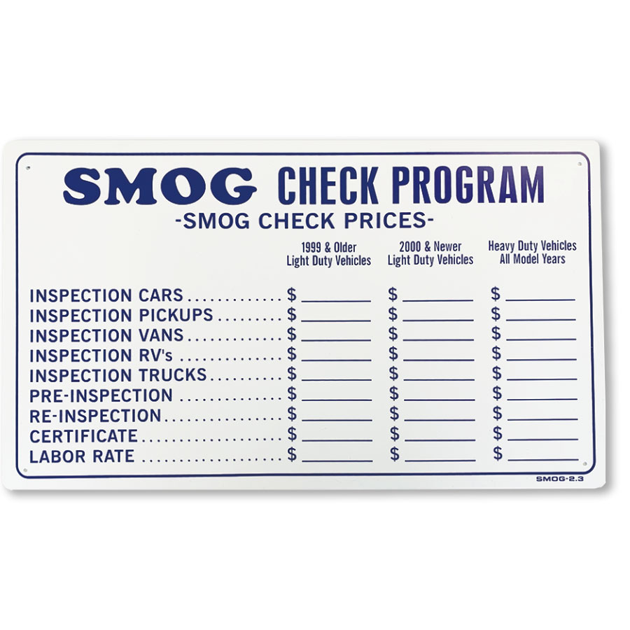 Shop Sign – 24" x 13" SMOG Check Program Prices