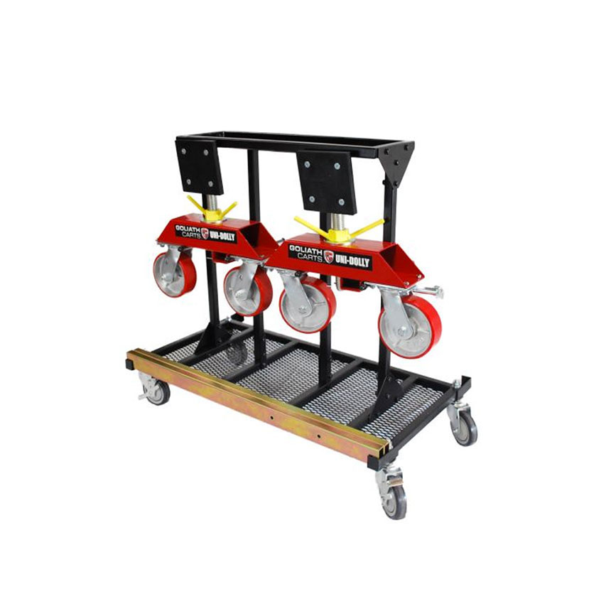 The Goliath Uni-Dolly vehicle movers are the most rugged, durable and flexible car dollies on the market! The Uni-Dolly models can be quickly transformed into several pieces of equipment that may be utilized in other areas of your operation. Whether you choose the standard 4800 model or the heavy-duty 9600, they are the car dolly systems that professional mechanics, racers and serious hobbyists should not be without.
