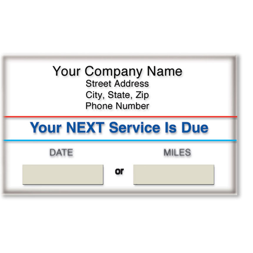 Our best-selling standard service stickers are imprinted with your company name, address, and phone number. Stickers have blocks for writing in.
