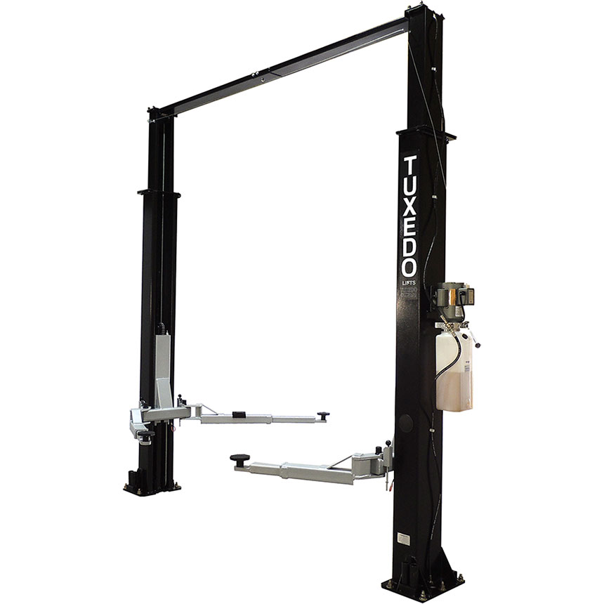 The Tuxedo 9,000 lb. Light Duty Two Post Lift is a clear floor vehicle lift with standard lift features including: