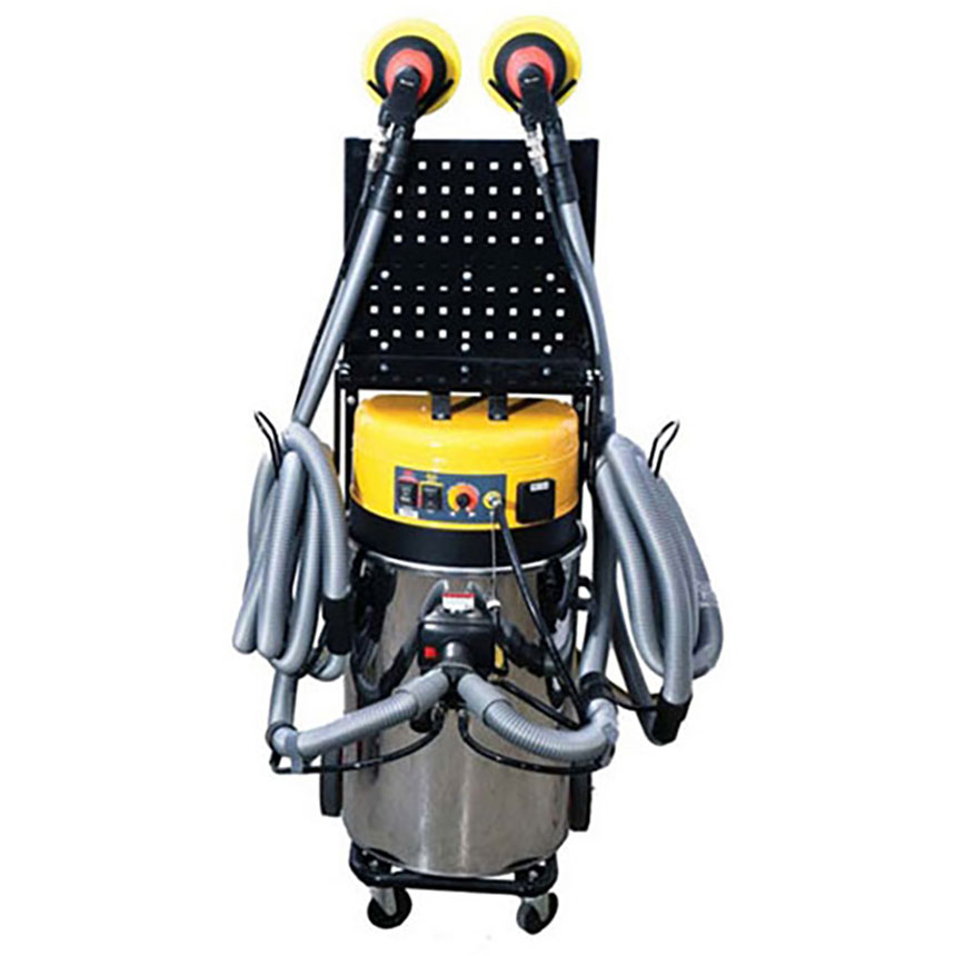 Two technicians can work on this Uni-Ram shop dust collector at the same time. Each hose is 16 feet long, and two 1000 W vacuum motors enable powerful suction. This equipment ensures that freshly painted parts stay dust-free. There is an on/off control at the sander to turn the vacuum on or off automatically. The 12 gallon/47 liter drum has a stainless steel construction to keep the system durable through use. This shop dust vac collection system has a two-stage filter, and and these are simple to replace. The head is removable for tilting the canister and removing waste easily.