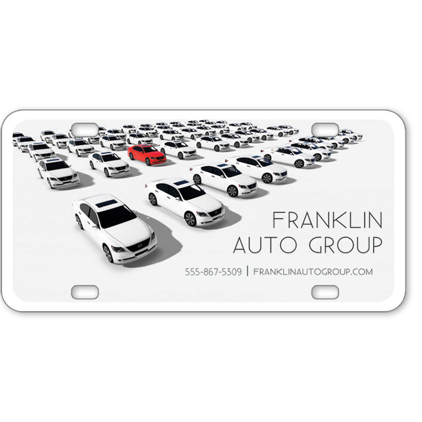 When you need a great looking advertisement with an even better price, our .015 gauge custom message inserts are an exact fit. Our .015 gauge material is lightweight and flexible, yet still very durable. These plates are priced to fit your budget and available in either standard vehicle plate size or standard motorcycle plate size. We print your custom design (send us your artwork) or one of our customized templates. To use our designs, simply give us the template number and your company information to print.